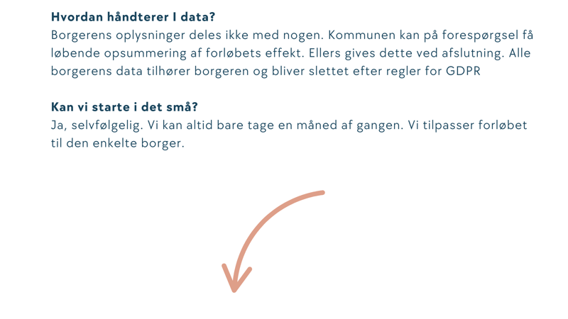 Pulsen sænkes, vejrtrækningen bliver dybere, og kroppen udskiller færre stresshormoner som kortisol og adrenalinFarver, bevægelse og skabende aktiviteter frigiver dopamin — hjernens eget “belønningsstof”.Kort sagt: Kreativitet hjælper den stressede hjerne med at skifte fra overlevelse til nærvær. Det skaber ro, fokus og små succesoplevelser — præcis det, der mangler, når man er presset.Sponsor-modellen Kommunen kobles på som sponsor og betaler borgerens abonnement. 30 dage: 397 kr. pr. borger Anbefalet forløb: 8–12 ugerAutonomi som vendepunkt “Alle gode tiltag på arbejdet gjorde mig mere stresset. Først da jeg selv bestemte tempo og rammer, kom roen tilbage.   Maleklubben bygger på den samme logik: frihed, små skridt og mestring.”  – Karina Bjerregaard BastholmRo/afslapning og håndtering af bekymringer Energi og hverdagsglæde Oplevet mestring og anerkendelse Maleklub-specifik lethed og hurtige resultaterLad os tale om målgruppe, rammer og en muligt pilot-projekt i jeres kommune. Jeg sender gerne eksempel på spørgeramme og minirapport. Hvordan dokumenterer I effekten? Borgeren besvarer et enkelt spørgeskema ved forløbets start og slut.   Passer tilbuddet til alle sygemeldte? Nej, tilbudet er ikke for alle. Har man aldrig brudt sig om kreative aktiviteter, er det ikke sikkert det her forløb vil kunne hjælpe borgeren.  Hvordan håndterer I data? Borgerens oplysninger deles ikke med nogen. Kommunen kan på forespørgsel få løbende opsummering af forløbets effekt. Ellers gives dette ved afslutning. Alle borgerens data tilhører borgeren og bliver slettet efter regler for GDPR  Kan vi starte i det små? Ja, selvfølgelig. Vi kan altid bare tage en måned af gangen. Vi tilpasser forløbet til den enkelte borger.